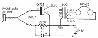 Este circuito es del manual de aplicaciones del transistor cK722 de la década de 50 publicado por Raytheon. El transformador puede ser del tipo drive o salida de radios transistorizados y el auricular es de baja impedancia.