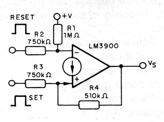 Una configuración de biestable simple, se puede obtener en base a un solo amplificador, como se muestra en la figura. Este flip-flop R-S se obtiene con la retroalimentación de la salida para la entrada no inversora.
