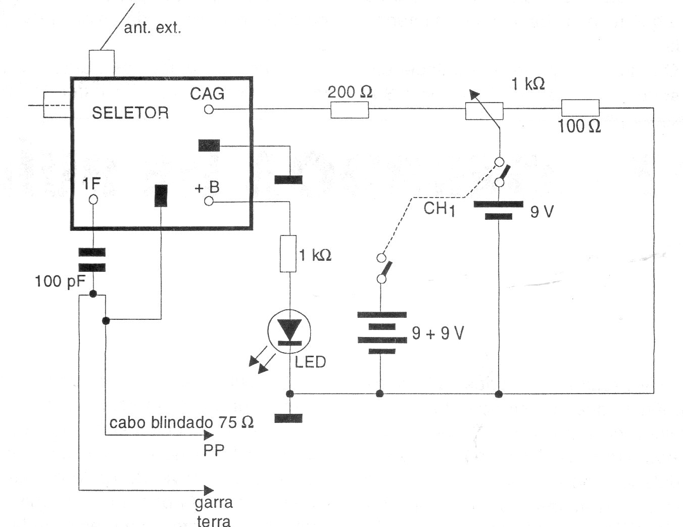 La idea básica de este proyecto de una documentación de 1998 es aprovechar el selector de canales de un viejo televisor analógico como inyector de señales. La señal capta la señal externa y la utiliza para pruebas diversas en equipos de VHF. La alimentación se realiza por dos fuentes de 9 V o según el selector utilizado.
