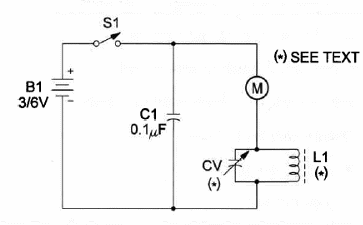 Este circuito genera una buena cantidad de ruidos que cubren un rango de RF que llega a algunas decenas de megahertz. El circuito puede ser utilizado en pruebas de equipos de comunicación. L1 y CV se dimensionan de acuerdo con la pista que se desea concentrar los ruidos. Para una centralización en ondas medias utilice una variable de radio AM y L1 con 80 vueltas de alambre esmaltado 28 en un bastón de ferrita. M es un motor DC común de 3 o 6 V. El circuito es del libro Fun Projects for the Experimenter de Newton C. Braga.