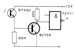 Este circuito se ha encontrado en una documentación antigua, pero puede utilizarse como shield de entrada para microcontroladores actuales. La alimentación para la lógica es de 5 V y para el sensor de 12 V, pero puede reducirse con modificaciones en los valores de los resistores. El transistor puede ser el 2N2222.