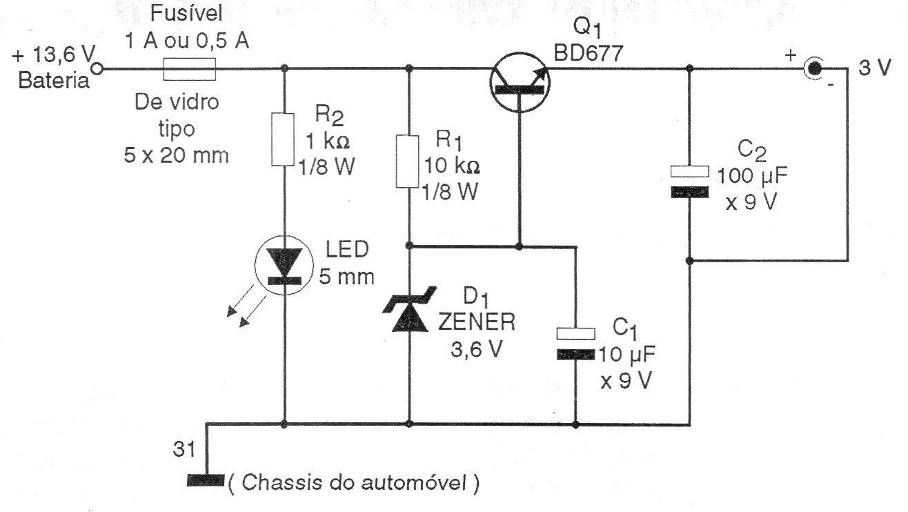En el año de este proyecto (1997) los walkmans eran comunes, pero esta fuente puede ser usada en el coche con otras aplicaciones que trabajen con 3 V. La corriente máxima es del orden de 500 mA y la tensión de salida es fijada por el diodo zener. Otras tensiones se pueden obtener con el cambio de este componente.