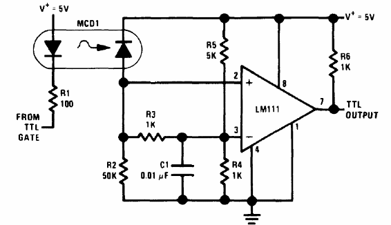 El circuito de shield presentado es del Linear Applications Handbook de National Semiconductor de 1994. El circuito puede ser implementado con otros operacionales y el acoplador óptico no es crítico. La fuente es de 5 V.