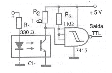 Este circuito está indicado para cualquier aplicación que utilice un acoplador con foto-transistor. La alimentación de la salida es de 5 V y de la entrada depende de la fuente excitadora. Para shields el resistor R1 puede tener valores entre 150 y 330 ohms dependiendo de la tensión de la lógica de control.