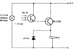 La distancia recomendada entre el emisor y el foto-transistor es de 10 mm para esta configuración. El circuito es sugerido por el manual de optoelectrónica de Texas Instruments. El relé debe ser de acuerdo con la alimentación del circuito.