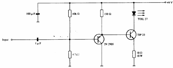 El circuito presentado es del manual de optoelectrónica de Texas Instruments. Se trata de enlaces de audio con LEDs emisores de infrarrojos de potencia. Se pueden utilizar transistores equivalentes. El circuito se puede utilizar como shield.