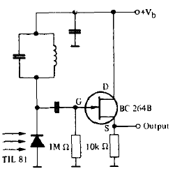 El circuito mostrado en la figura selecciona señales moduladas de una determinada frecuencia. Esta frecuencia depende de LC. Los demás condensadores pueden estar entre 1nF y 100 nF, según la frecuencia. El circuito es del manual de optoelectrónica de Texas Instruments.