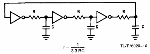 El circuito presentado es del Linear Applications Handbook y la frecuencia máxima es del orden de algunas decenas de Megahertz. La fórmula para calcular la frecuencia se da junto al diagrama.