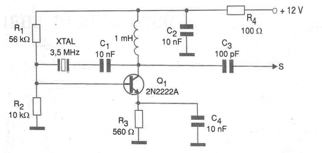 La frecuencia original del Oscilador Pierce con transistor bipolar es dada por el cristal, el cual puede ser alterado en el rango entre 1 MHz y 10 MHz típicamente. El circuito mostrado en la figura puede ser alimentado con tensiones en el rango de 9 a 12 V, estabilizadas. Los capacitores deben ser cerámicos y el transistor admite equivalentes.