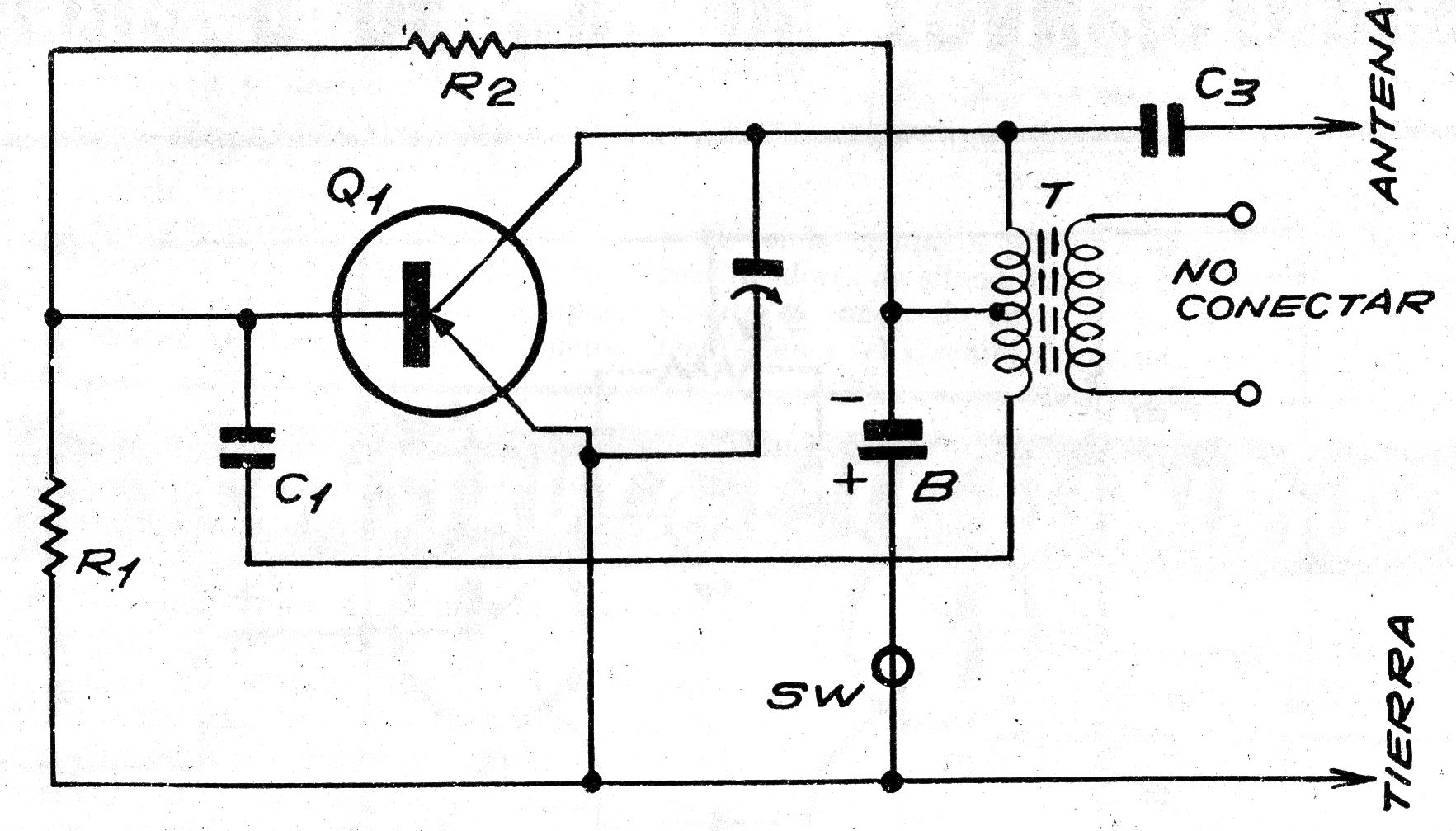 Al conectarse a un receptor de onda corta, este circuito tiene como objetivo posibilitar la decodificación de las señales en SSB (Single Side Band) o banda lateral única. Ajusta el pequeño transformador de FI utilizado como oscilador para obtener el mejor rendimiento El circuito es alimentado por una batería de 9 V y el transistor puede ser el BC558. El circuito es de una antigua publicación argentina de los años 70. (nota: conectar un resistor de 100R entre el emisor y la tierra, si el circuito no oscilar)