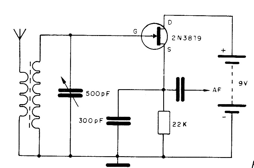 Este circuito de receptor de ondas medias o cortas fue encontrado en una documentación de los años 80. El circuito utiliza un método de detección creado por la empresa Sylvania de la época. El circuito tiene su señal aplicada a un paso amplificador de audio. Consulte los circuitos anteriores (CIR5878S y CIR5877S) para obtener información sobre la bobina.