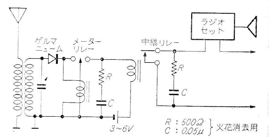 Este circuito utiliza un vibrador sensible que se puede elaborar con un reed-switch para accionar un relé a partir de señales intensas. El circuito sirve para un control de muy corto alcance o experimental. La bobina receptora depende de la frecuencia de la señal de accionamiento. El circuito es de una documentación japonesa de los años 60.