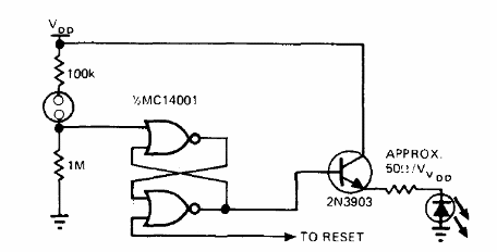 Este circuito se bloquea después de un breve toque en el sensor. El circuito puede ser alimentado por tensiones de 5 a 15 V. No use fuente sin transformador. El transistor puede ser el 2N2222 y en lugar del LED podemos accionar un relé conectado al colector. En este caso, aterrizar el emisor.
