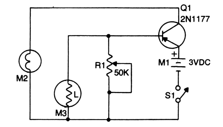 El LDR se coloca de modo que reciba sólo la luz de la pequeña lámpara de 3 o 6 V (según la alimentación). De esta forma, cuando un fósforo se enciende cerca, se enciende y realimenta el circuito manteniéndola encendida. El circuito es de una publicación de 1981.