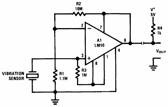 El circuito integrado utilizado en este proyecto es poco común. Podemos, sin embargo, aprovechar la configuración adaptando a circuitos integrados más modernos. El circuito es del Linear Applications Handbook de National Semiconductor de 1994.