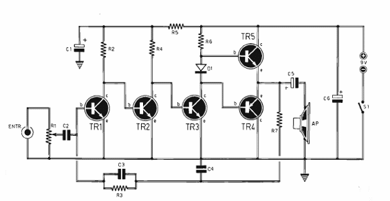 Encontramos este circuito en una Elettronica Práctica Italiana de 1977. El BC107 puede ser sustituido por el BC547 y el BC177 por el BC557. El circuito utiliza una ventosa para captar los sonidos junto al auricular que debe ser del tipo magnético. La mejor posición del captador debe obtenerse experimentalmente.