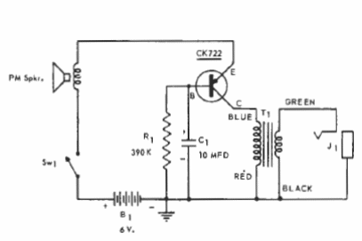 Este preamplificador para micrófono de baja impedancia es de una publicación de Raytheon de 1957, utilizando transistores de germanio. El circuito se puede montar con un BC558 y el transformador es un controlador que se puede obtener en un radio transistor fuera de uso.