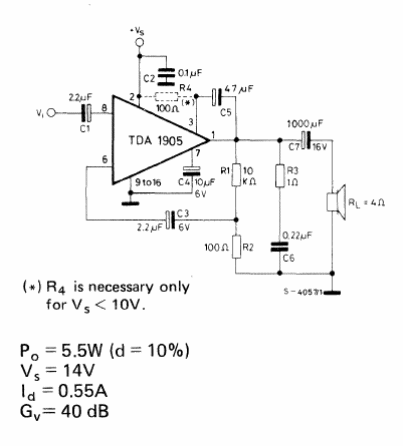 Este circuito es sugerido por el manual de circuitos integrados lineales de la SGS de 1982. La placa se da junto al diagrama. El componente utilizado no es muy común en nuestros días y la fuente debe tener al menos 700 mA.