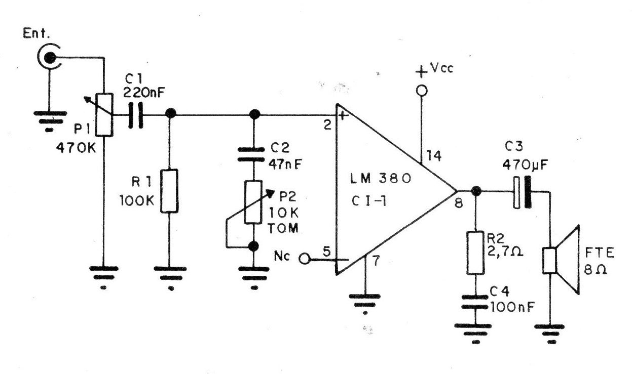 Dependiendo de la tensión de alimentación, que puede quedar entre 9 y 22 V y la impedancia de la carga que puede tener de 4 a 16 ohms, este circuito puede proporcionar potencias de 1 a 3,5 W con excelente calidad de sonido. El circuito integrado utilizado no es muy común actualmente.