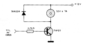 Con esta etapa el motor se energiza cuando la entrada TTL o CMOS es al nivel alto. Los motores de hasta 1 A y tensiones en el rango de 5 a 12 V pueden ser alimentados. El transistor debe tener un radiador de calor principalmente si el motor funciona con la corriente máxima indicada. El circuito es un shield para microcontroladores.