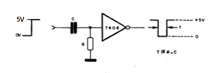 La transición negativa de la señal de entrada produce un pulso de salida cuya duración depende de R y de C, conforme fórmula al lado del diagrama. Otros inversores pueden ser usados y la alimentación de los inversores puede ser encontrada en otros artículos del sitio o en el libro Curso de Electrónica Digital, gratis para descargar. Este Shield se debe utilizar con la salida de 5 V del microcontrolador.