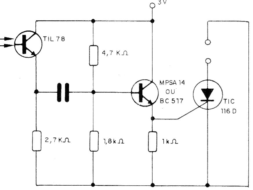Este circuito fue encontrado en 1995. Pero todavía hoy el flash auxiliar con lámpara de xenón es utilizado por muchos fotógrafos profesionales para evitar sombras. El sensor debe instalarse en un tubo que apunta al flash de la máquina principal. El circuito se alimenta con dos pilas AA o AAA.