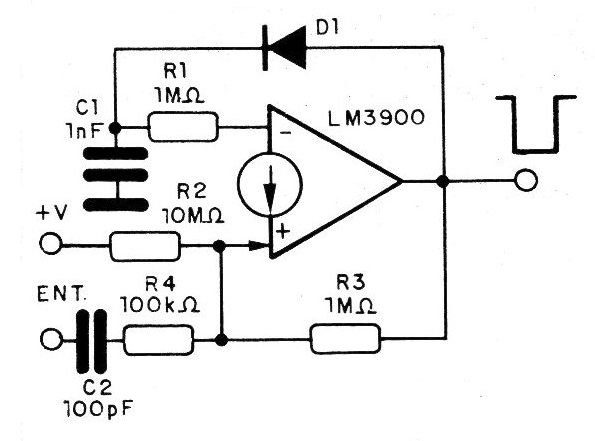 El circuito de la figura genera un pulso negativo, cuando recibe un estímulo apropiado en su entrada. La duración de este pulso depende de C1, y su operación se hace de manera similar al CIR3923S.