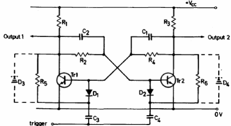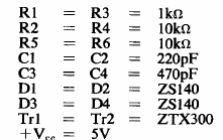 La velocidad máxima de conmutación de este circuito es de 200 kHz sin los diodos y 400 kHz con los diodos. El circuito es sugerido por el manual de transistores de Ferranti de 1974. Los transistores equivalentes modernos como los de la serie BC pueden ser utilizados.