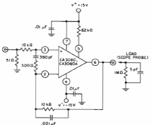 El amplificador operacional de transconductancia (OTA) de este circuito de la RCA puede ser sustituido por equivalentes más modernos. La ganancia de tensión es unitaria y la fuente de alimentación debe ser simétrica.