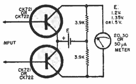 Este circuito es del manual de aplicaciones de Raytheon que lanza el CK722, el primer transistor comercial del mundo en la década de 50. El amplificador diferencial indicado puede utilizar transistores equivalentes más modernos y el instrumento puede ser un multímetro en la escala más baja de corrientes.