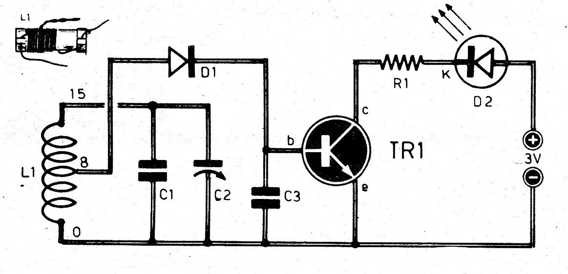 El texto es el original de la época: La palabra ondametro es capaz de causar cosquillas en los oídos puristas de algunos técnicos de la nueva generación, medios sofisticados, que y temblaban al oír palabras "cafonas", procesos que se ha convertido en una de las más importantes de la historia de la ciencia y de la ciencia y de la tecnología. De 27 a 25 MHz por ejemplo L1 deberá ser enrollada sobre una forma de 8 mm con hilo de 0,5 de diámetro, en un total de 15 espiras, con derivación en la octava espira, espiras, Si el indicador asociado con C2 es calibrado, es posible medir la frecuencia emitida por el transmisor y dada, carente de informaciones correctas, objetivas y al punto Poder- sería llamar a este circuito de indicador de presencia de radiofrecuencia a) También podría llamarse frecuencímetro pues al final mide la frecuencia de la emisora. Pero hallamos captada por el ondulado, cuando está cerca de aquel. El diodo Led se encenderá e indicará el pico de sintonía, permitiendo una precisión exacta en la medición de la frecuencia de la onda.