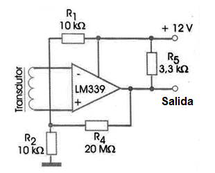 En la figura tenemos un circuito práctico para uso con transductor magnético. El resistor de 20 M ohms determina la ganancia del circuito, debiendo ser cambiado en función de la sensibilidad del transductor. La fuente de alimentación debe ser simétrica, con tensión de acuerdo con la deseada para la amplitud de la señal que debe excitar el paso siguiente.