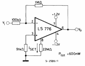 Este amplificador es del manual de circuitos integrados lineales de la SGS de 1982. La fuente de alimentación debe ser simétrica y otros amplificadores operacionales que se pueden utilizar.