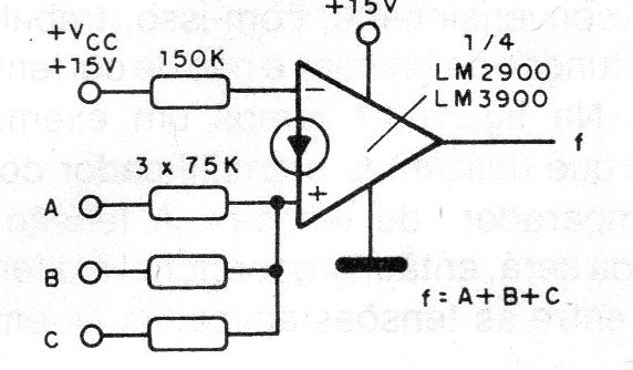 Polarizando la referencia con la tensión de alimentación podemos utilizar estos amplificadores en circuitos lógicos. El circuito de la figura es un ejemplo de ello. En este caso, tenemos una tensión de alimentación y referencia de 15 V y la fuente es simple.