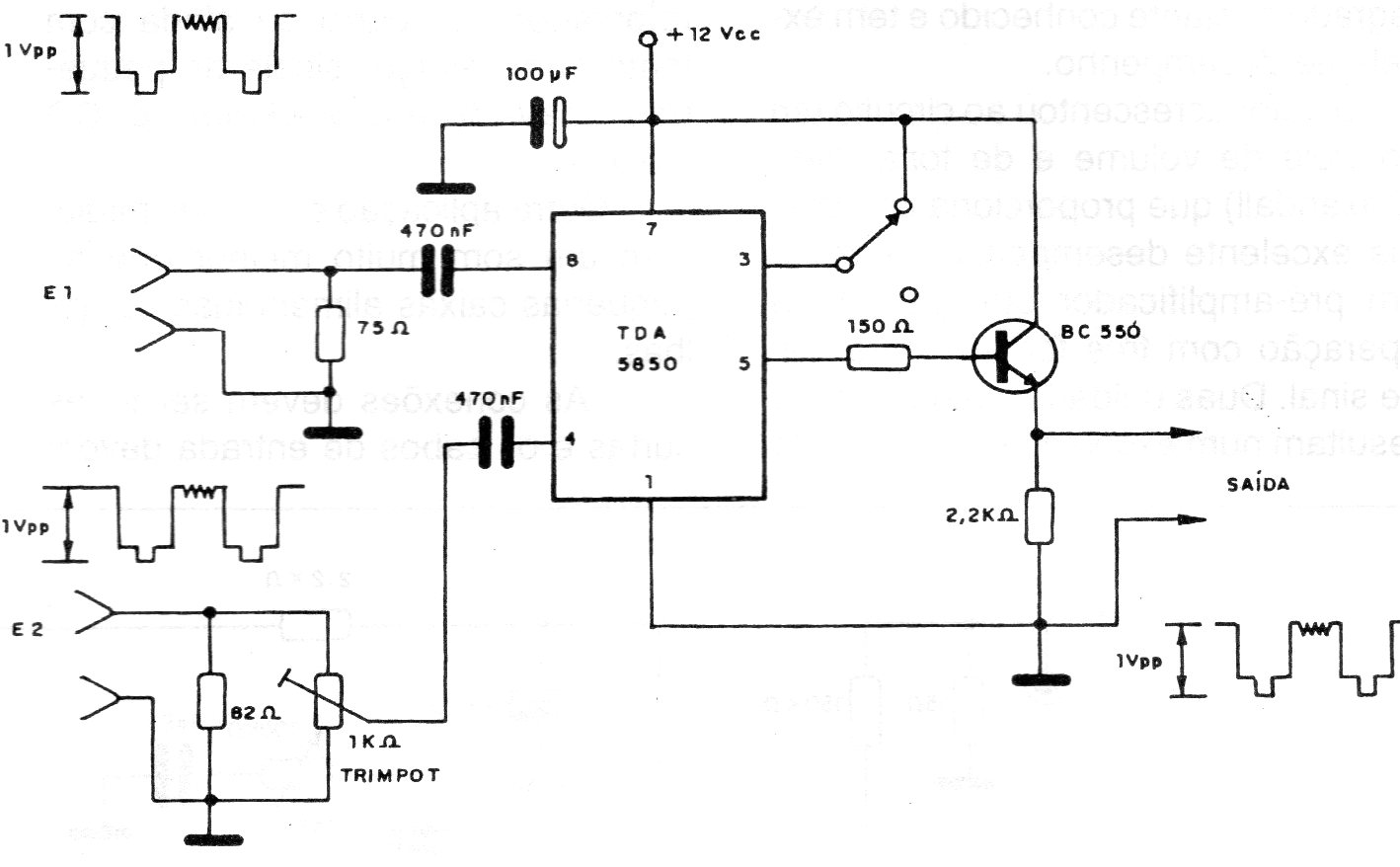 Este circuito, encontrado en una documentación de 1995, está destinado a la conmutación de señales de vídeo RGB compuesto como los obtenidos en videojuegos y reproductores de CD. El circuito utiliza un componente que no es muy común en nuestros días, el circuito integrado. La alimentación se realiza con una tensión de 12 V.