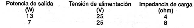 Para una distorsión total de 0,7% tenemos las características de la tabla.