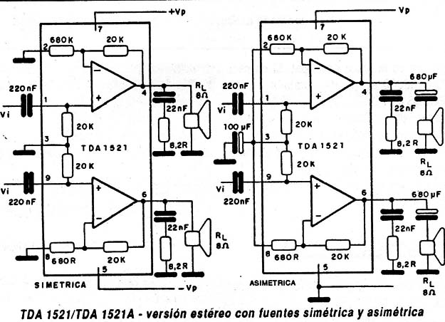 Este integrado es indicado para sistemas de sonido de televisores estéreo y radios estéreo. La distribución de sus pinos os compatible con el TDA1521A y puede funcionar tanto con alimentación simétrica como asimétrica en las tensiones comprendidas entre 7,5V y 20V. Es fabricado en cubierta SILde 9 pinos. Tenemos las siguientes características de este integrado: