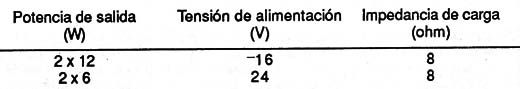 Ganancia de tensión fijada en 30dB (16V de alimentación y carga de 8 ohm) con excelente equilibrio entre los canales (menor que 0,2dB).