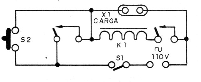 La finalidad de este circuito es cortar la alimentación de un electrodoméstico en caso de falta de energía evitando que sean reconectados en la vuelta de la energía. Para que vuelvan a recibir la alimentación hay que presionar por un instante S2. El relé es del tipo de 110 V o 220 V según la red de energía.