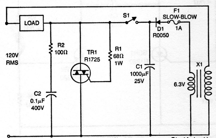 Encontramos este circuito en una antigua documentación americana de los años 70. El Triac puede ser de cualquier tipo de la serie TIC, conforme la potencia de la carga a ser controlada. El circuito funciona tanto en la red de 110 V como 220 V, bastando sólo observar los componentes que deben ser usados. D1 puede ser el 1N4002 y el secundario del transformador es de 100 mA o más.