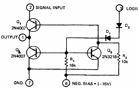 Esta configuración fue encontrada en una documentación de 1972. El circuito requiere una referencia de tensión de 0 a -12 V. Los transistores pueden ser de tipos más modernos como los BC558.