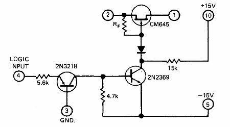 Encontramos este circuito en una documentación americana de 1972. El circuito puede ser elaborado con el BF245 como FET y para los bipolares podemos usar el BC558 y BC548. El circuito necesita una fuente simétrica.