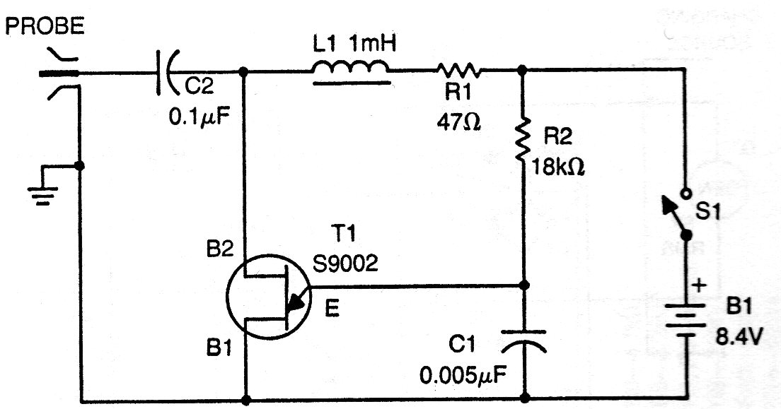 Este oscilador de relajación con unijuntura puede ser utilizado como un inyector de señales de gran utilidad. El circuito es de una publicación americana de los años 70 y con la ayuda del inductor genera muchos armónicos que lo hacen útil en la reparación de equipos de radio. El transistor unijuntura puede ser el 2N2646 y los componentes pueden tener sus valores cambiados para un mejor rendimiento. La alimentación se puede realizar con una batería de 9 V.