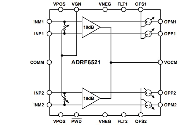 Analog Devices ADRF6521 Amplificador de ganancia variable dual