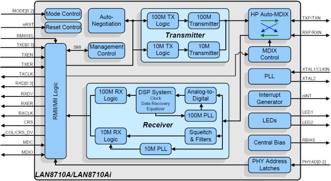 Mayo de 2017 - Mouser Electronics está ofreciendo los circuitos integrados LAN8710A y LAN8710Ai de Microchip, transceptores de alto rendimiento de baja potencia. Los nuevos componentes son indicados para aplicaciones en TV de alta definición (HDTV), grabadoras, consolas de juegos, telecomunicaciones e industriales.
