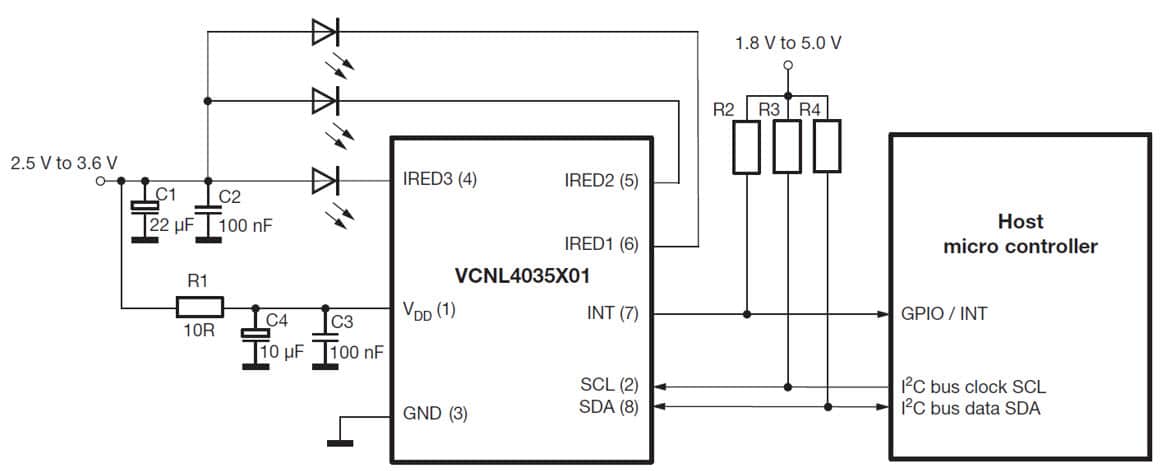" />Mayo de 2017 - Estos nuevos sensores de Vishay ya se pueden adquirir en la Mouser Electronics y tienen una resolución de 12 bits para el sensor de proximidad de 16 bits para el sensor de luz ambiente. La corriente máxima del emisor es de 200 mA. El sensor permite el reconocimiento de algunos gestos.