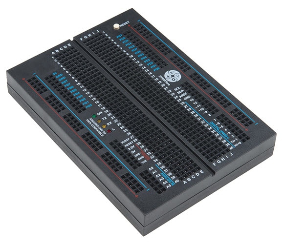 Septiembre de 2017 - SparkFun ofrece a través de Mouser Electronics sus placas de montaje tipo protoboard o matriz de contactos que tiene embutida hardware compatible con conjunto de shields compatibles con Arduino. La placa tiene clavijas del ATmega32 expuestas para facilitar el desarrollo de proyectos.