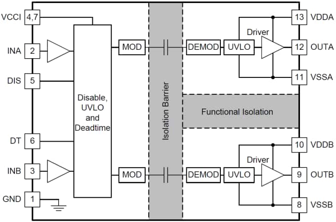 Se encuentra en las existencias de Mouser Electronics el UCC21225A de Texas Instruments. Se trata de una puerta de control aislada con una fuente de 4 A indicada para excitar MOSFET, IGBT y SIC MOSFET en frecuencias de hasta 5 MHz.