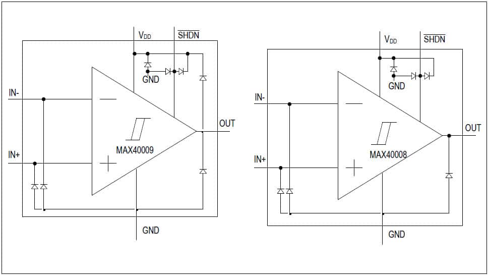 En la Mouser Electronics se pueden adquirir los comparadores de tensión MAX 40008 y MAX40009 de Maxim con función de shutdown. Los dispositivos operan con tensiones de 1,7 a 5,5 V y consumen sólo 12 uA. El tiempo de propagación alcanza 220 ns.