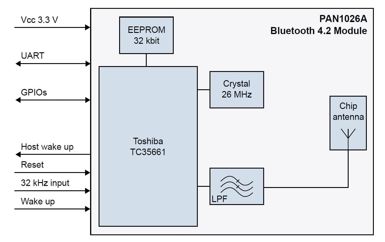 Mouser Electronics ya cuenta con el módulo Bluetooth PAN1026A de Panasonic clase 2, con Bluetooth 4.2 y tasa básica de datos y bajo consumo. El módulo tiene perfil SPP y GATT integrados y comandos de API de alto nivel.
